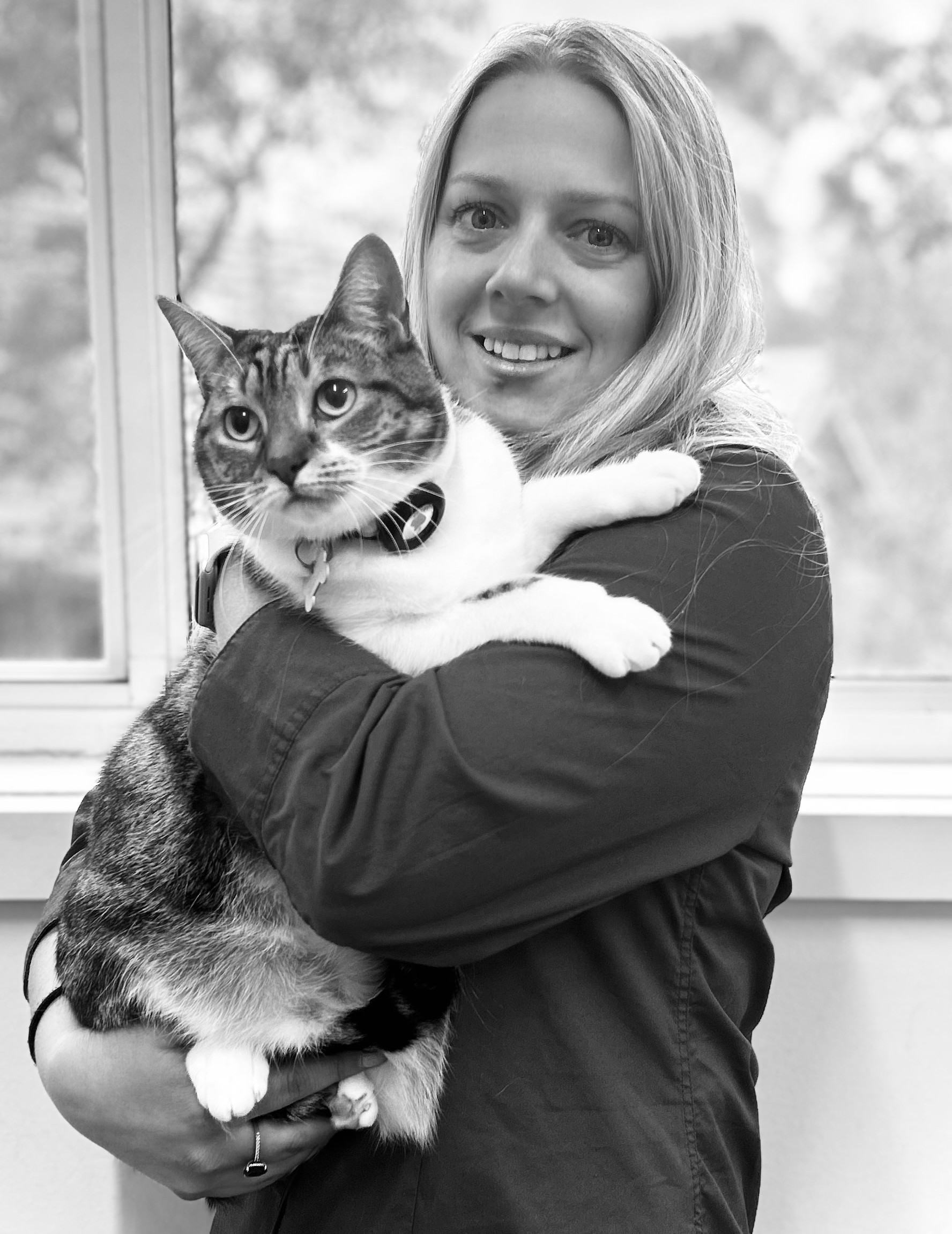 From a young age, Jaimee was surrounded by a wide variety of pets, sparking her deep love and understanding of animals. At the clinic, she’s affectionately known as the “crazy cat lady,” sharing her home with her beloved cats Muffin, Ginge, Chase, Stud, and Velcro—as well as Kiwi, her energetic chocolate Labrador who keeps her on her toes.